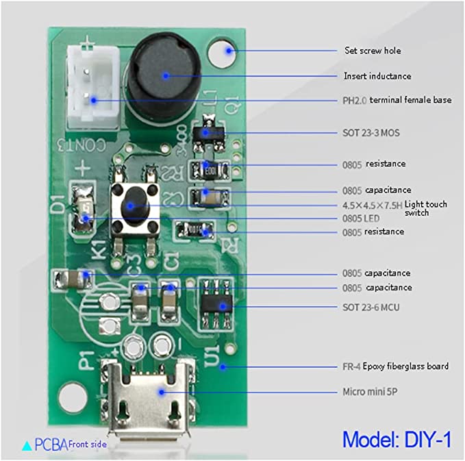 - It Is A 108KHz 20mm Micro USB Humidifier With Driver. It Will Keep Work after Power-ON.
