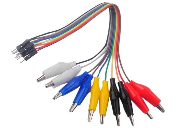 This is a 10-pack of wires that are pre-terminated with an alligator clip