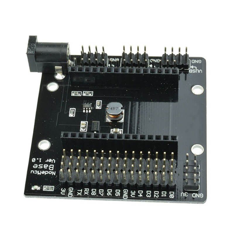 This base board is designed to ease the prototyping using NodeMCU V3 board (Lolin). It extends the GPIO of NodeMCU to header pins, which also includes the Vin, VUSB, 5V, 3.3V and GND. You can further use these pins for prototyping, with the male to female jumper wires. With the on board voltage regulator, you can now power the NodeMCU and whole system with DC jack, voltage range from 6V to 24VDC. The board also comes with power indicator.