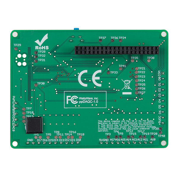 The DAQCplate (Data Acquisition and Controller) from Pi-Plates adds a rich set of input/output options to your Raspberry Pi. It includes seven powerful digital outputs for driving external devices such as relays and high-current LEDs, as well as eight analog-to-digital inputs for measuring temperature, voltage, humidity and more. Additionally, there are eight digital inputs, two analog outputs and seven general-purpose indicator LEDs.