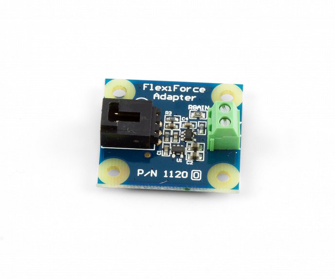 The 1120 FlexiForce Adapter makes it easy to interface a Tekscan FlexiForce force sensor to an Analog Input or VINT Hub Port.
