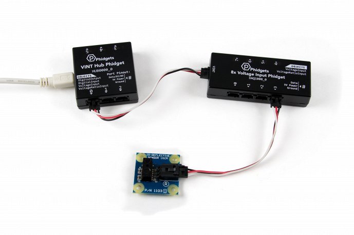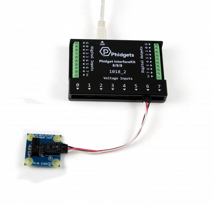 This sensor can detect the presence of objects at a distance of 0 to 10cm regardless of the object reflective properties. When an object enters the range of detection, the output voltage becomes zero, and when it leaves, it returns to 5V. The 1103 works just as well in both dim and well lit environments.