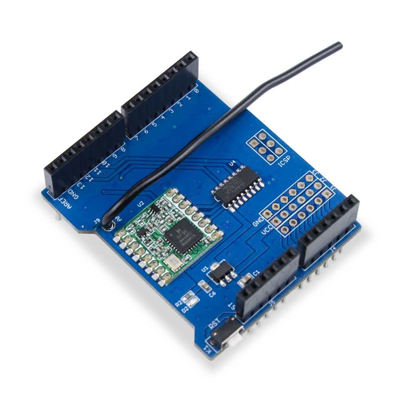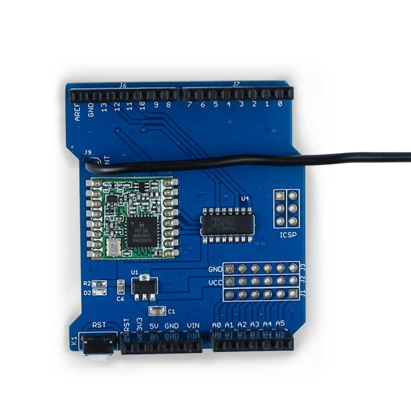 Using Hope RF’s patented LoRa™ modulation technique the Lora Shield can achieve a sensitivity of over -148dBm using a low cost crystal and bill of materials. The high sensitivity combined with the integrated +20 dBm power amplifier yields industry leading link budget making it optimal for any application requiring range or robustness. They can easily go 2 km line of sight using simple wire antennas, or up to 20 km with directional antennas and settings tweakings. LoRa™ also provides significant advantages in both blocking and selectivity over conventional modulation techniques, solving the traditional design compromise between range, interference immunity and energy consumption .