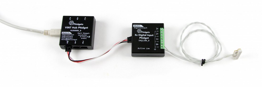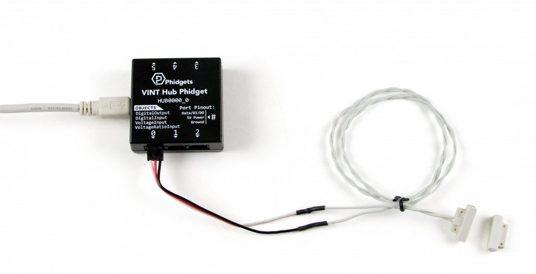 The switch handles gaps of up to 12mm (1/2 inch) between the magnet and the switch. The switch will turn the digital input “on” when the magnet is within 12mm of the switch, and will turn “off” when the contact is broken by moving the magnet more than 13mm away.