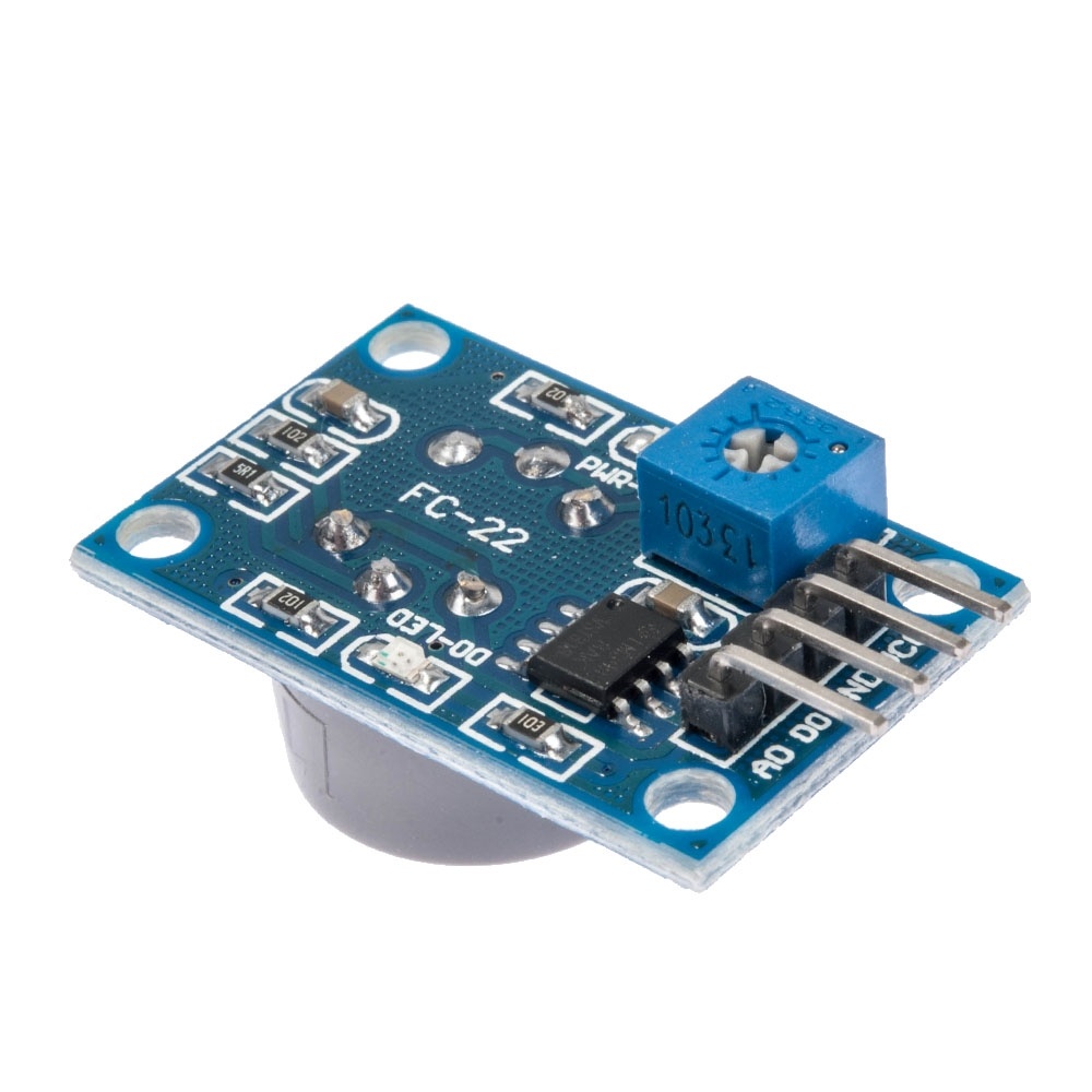 Gas sensor MQ7 detects the presence of Carbon Monoxide (CO) in the air. The best results are given when alcohol is in liquid form, however, it still does an amazing job when measuring in gas form. It needs a bit of time to warm up in order to work correctly.