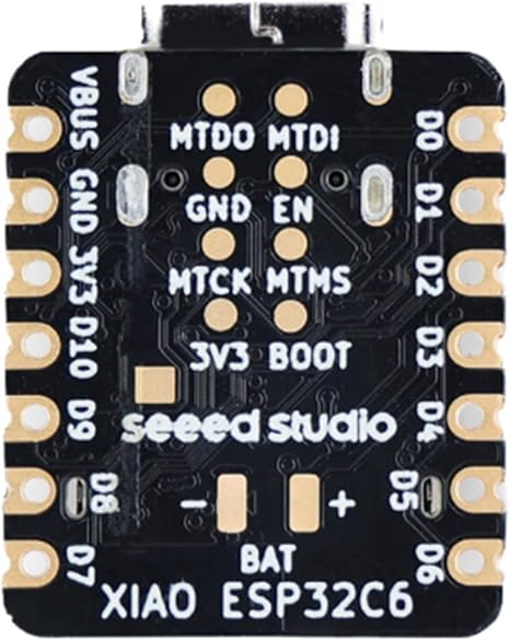 XIAO ESP32C6 is Matter native thanks to its enhanced wireless connectivity. The wireless stack supports 2.4 GHz WiFi 6, Bluetooth® 5.3, Zigbee, and Thread (802.15.4). As the first XIAO member compatible with Thread, it’s a perfect fit for building Matter-compliant projects, thus achieving interoperability in smart-home.