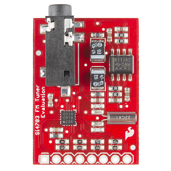 This is an evaluation board for the Silicon Laboratories Si4703 FM tuner chip. Beyond enabling you to tune in to FM radio stations, the Si4703 is also capable of detecting and processing both Radio Data Service (RDS) and Radio Broadcast Data Service (RBDS) information. The Si4703 even does a very good job of filtering and carrier detection. It also enables data such as the station ID and song name to be displayed to the user.