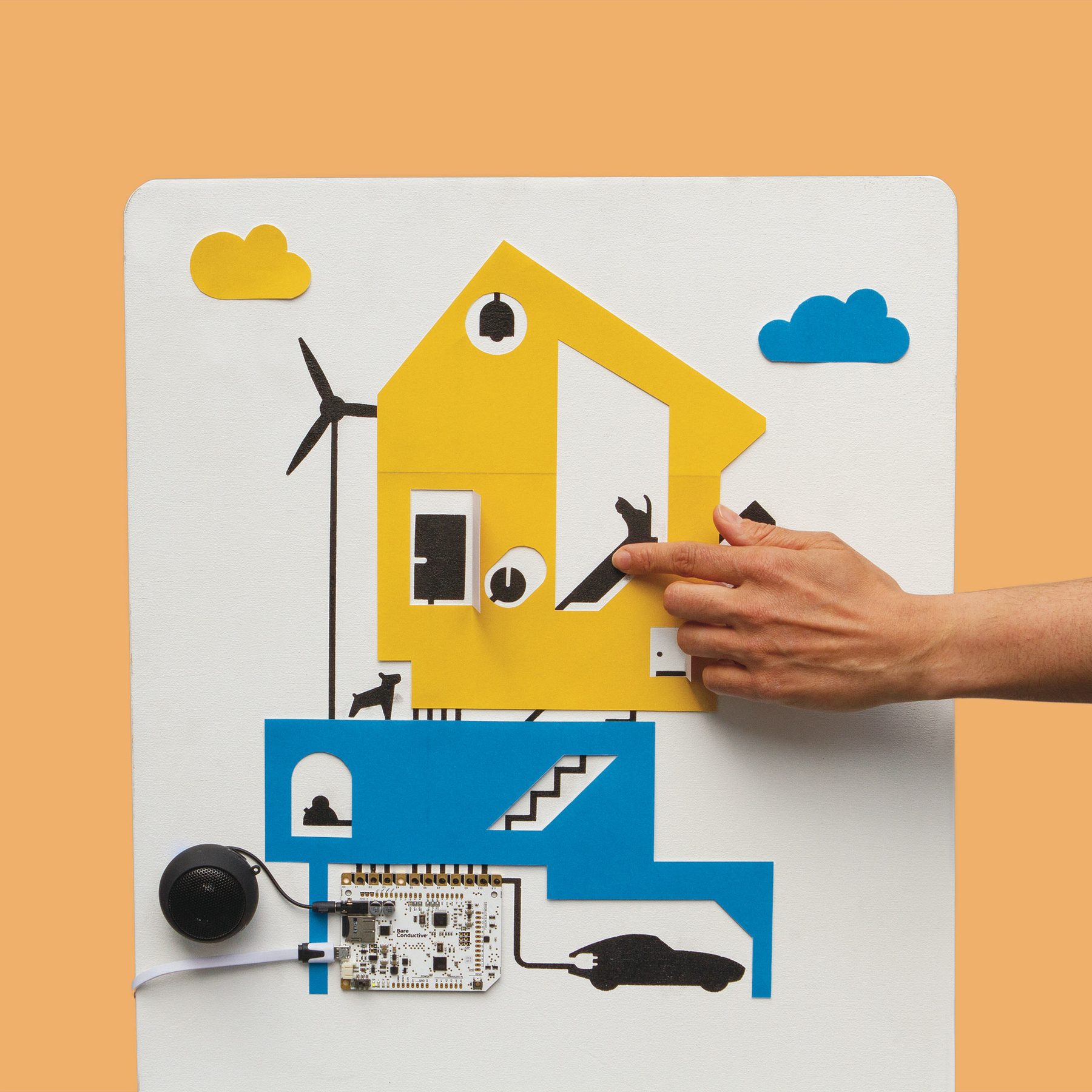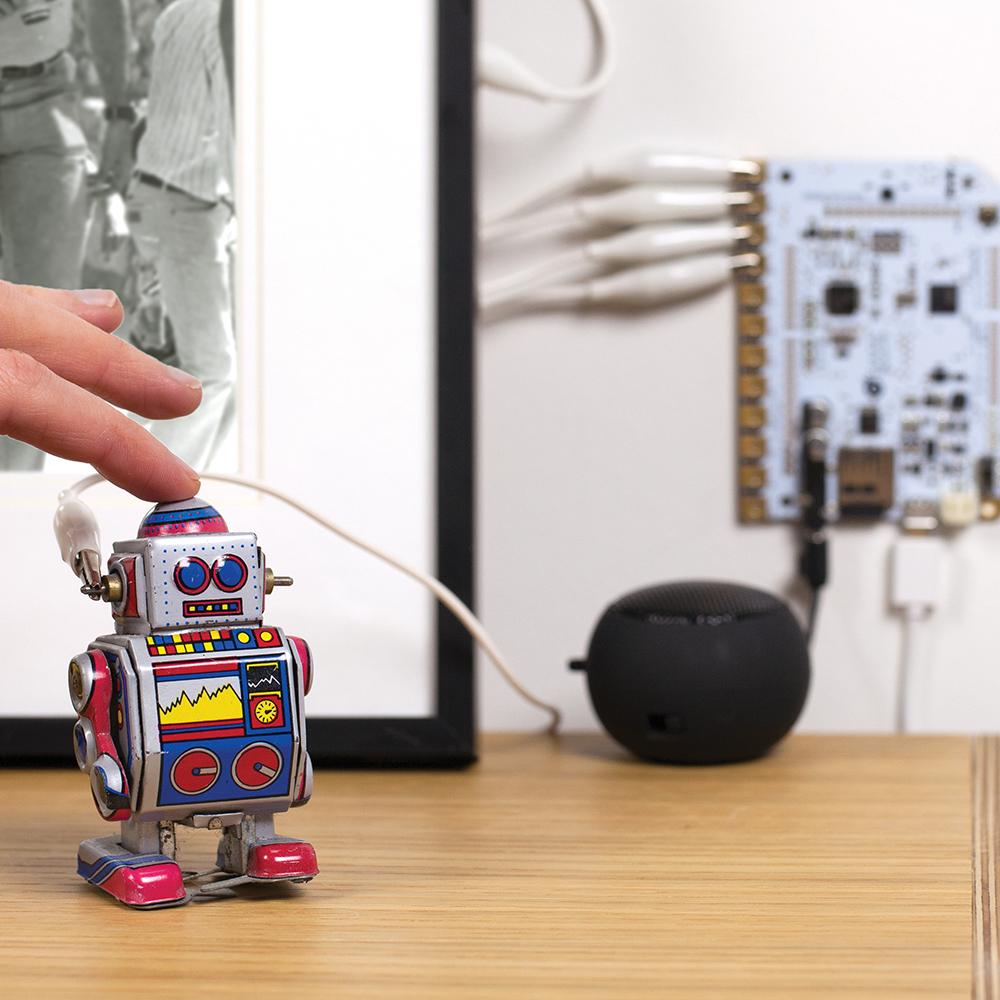 Add intelligence and interactivity to the objects around you. Connect the Touch Board to any conductive object and give it a voice!